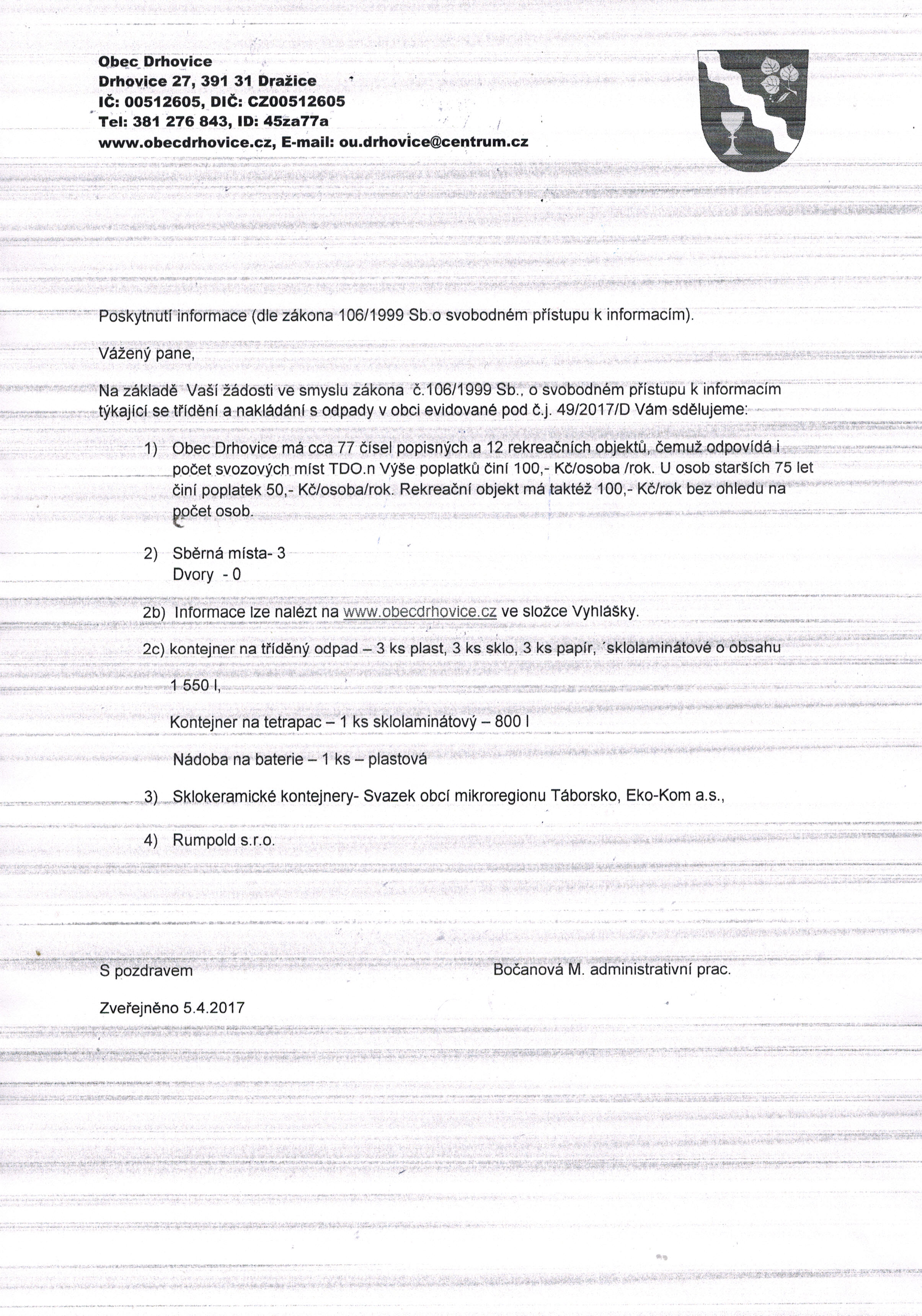 Www: www.obecdrhovice.cz